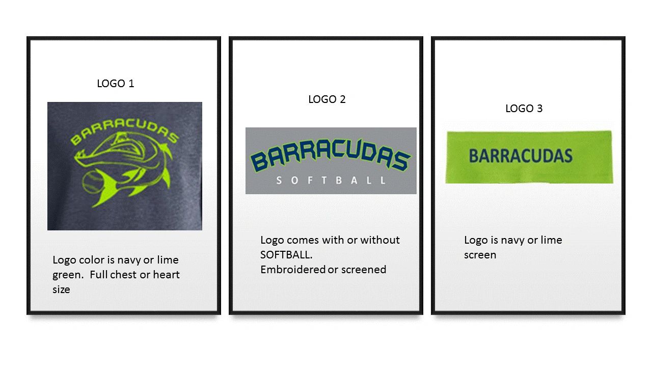 All Items include your Barracuda logo. All items can be personalized with your name and or number by adding $5.00 per item. Any questions please call us at 203.853.2863. We will be happy to assist you in completing your order.